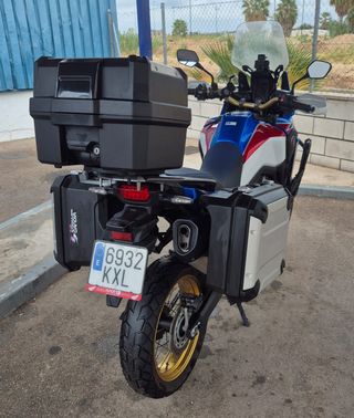 Vendo Honda Africa Twin en perfecto estado de todo, 2019, 30.000 km, siempre en garaje, único propietario, utilizada solo en carretera, todos los servicios en Honda (se entrega con el servicio de 30.000 km hecho), ITV 06/27, ABS, control de tracción, modos de conducción, puños calefactables, defensas, 2 cúpulas, alta y baja, paramanos, cubre carter, neumático delantero con solo 3.000 km, el trasero aun bien para hacerle 10.000 km, caballete central, maletas y baúl original Honda y bolsas interiores, navegador Garmin, faros auxiliares, Mapit (con la aplicación en el móvil sabes siempre donde está tu moto). NO NEGOCIABLE