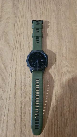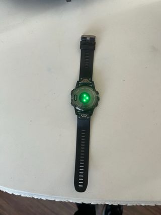 Garmin Fenix 6 Pro con correa de silicona en color verde y una correa negra de repuesto Todo funciona perfectamente y la batería aguanta bien. Incluye Reloj Las 2 correas mencionadas Cable de carga Caja original Condición la que se aprecia en las fotos. El cristal no tiene ninguna raya, pero si esa marca que solo se ve en ciertas condiciones de luz. Preguntad sin compromiso.