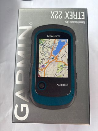 GPS Garmin Etrex 22x, diseñado para ser resistente y portátil. - Pantalla a color. - Resistente al agua y al polvo. - Ideal para actividades al aire libre.