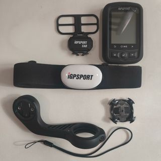 Ciclocomputador IGPSPORT 618 con varios accesorios para ciclismo. - Ciclocomputador IGPSPORT 618 con 4 usos, aún tiene el protector de pantalla original. Incluye funda de goma. - Sensor de cadencia IGPSPORT. - Banda pectoral para monitor de ritmo cardíaco IGPSPORT. - Soporte para manillar alargado original Garmin y soporte para manillar standard. - Correa de seguridad Garmin.