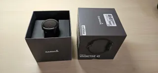 Vendo reloj inteligente Garmin Vivoactive 4S en color negro. La pantalla está rota, como se ve en las imágenes. Incluye una correa adicional de color verde lima. - Incluye caja original. - Correa adicional. - Pantalla dañada