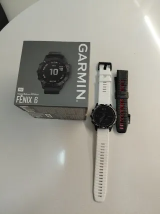 Garmin Fenix 6 Pro en buen estado, con protector de pantalla y bisel. Correa original y otra blanca no original