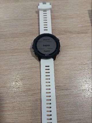Reloj deportivo Garmin Forerunner 45 en color negro. Diseñado para el seguimiento de actividades deportivas y el control de la salud. - GPS integrado. Siempre me mide las distancias en pista de forma exacta. - Monitor de frecuencia cardíaca, y seguimiento de pasos. - Programación de sesiones de entrenamiento - Ligero y cómodo, con correa de silicona Funciona perfectamente y me ha acompañado en varios entrenamientos. Aguanta más de una semana la batería dándole uso, y es resistente al agua. Lo vendo porque me regalaron un modelo nuevo de segunda mano, y éste merece una segunda vida también.