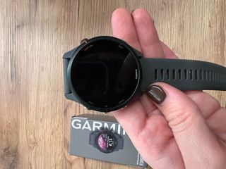 Reloj deportivo Garmin Forerunner 255 en color gris. - Diseño moderno y ligero. - Correa de silicona ajustable. - Pantalla circular. - Bisel con botones de control. - Correa desgastada por el uso. - Funciona perfecto. - Cambio por cambio de modelo.