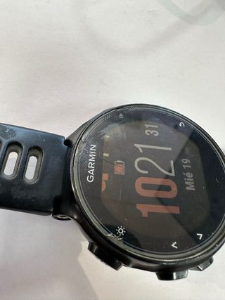 Se vende reloj de triatlón Garmin Forerunner 920XT en muy buenas condiciones y con correa nueva. Batería en perfecto estado y siempre con protector de pantalla. Incluye su cargador, monitor de frecuencia cardiaca (con desgaste en los sensores de pecho), pasadores, hebilla de correa, destornilladores de precisión y protector de pantalla nuevo. Todo en su caja original con libros de instrucciones.