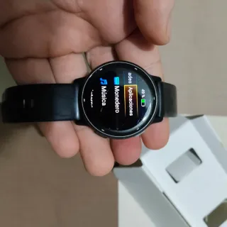 Reloj inteligente Garmin Venu con un diseño moderno y versátil. - Esfera redonda. - Correa negra. - Detalles multicolor en la pantalla. La pantalla está Rallado pero el táctil funciona perfectamente, incluye cable original y caja(caja de otro modelo)