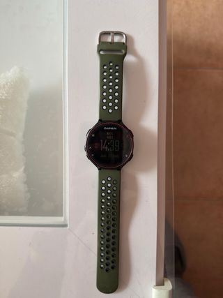 ¡Reloj GPS en excelente estado y listo para correr! Vendo mi Garmin Forerunner 235 muy bien cuidado. Es un reloj ligero, fiable y perfecto tanto para corredores principiantes como avanzados que buscan precisión sin complicaciones. Lo mejor de esta unidad: Pantalla intacta: Siempre se ha usado con cristal templado protector (incluido), por lo que la pantalla original está nueva debajo. Batería en gran estado: Dura una semana o más en modo reloj (sin GPS), perfecta para el uso diario. Accesorios: Incluyo la correa original (rojo/ negro) y una correa verde militar adicional para cambiar el estilo.