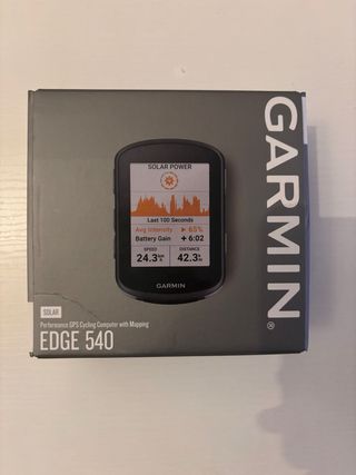 Ciclocomputador GPS Garmin Edge 540 Solar con mapeo. - Pantalla con tecnología Solar. - Muestra datos de velocidad y distancia. - Incluye información de intensidad y ganancia de batería.