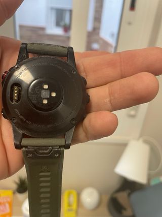 Reloj deportivo Garmin Fénix 6 Pro Solar en buen estado. Solo usado puntualmente para actividades, nunca lo uso como reloj de diario. batería con pocos ciclos de carga con su caja y cable originales. Ligeras marcas de uso y un pequeño arañazo superficial de unos 3-4mm en la zona inferior del cristal, justo encima del logo de Garmin