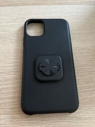 funda negra sencilla para iphone 11 con el enganche “tipo garmin” incluido para poder llevar el móvil en el soporte de la bici.