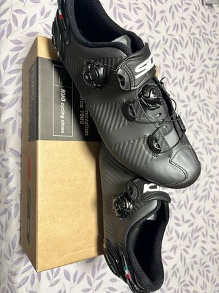 Zapatillas Sidi Wire 2 S de carretera ,sin usar ,con suela de carbono ,son las tope de gama PVP 390€ ...las vendo más baratas que me costaron x error de talla y son de horma estrecha... - Modelo: Sidi Wire 2 S ... - Color: negro antracita.. - Talla EUR 43 / US 8.8. 27 cm de largo la plantilla y 9 cm de ancho.. - Se venden en su caja original...se hace envío o mejor entrega en mano..Sidi..nimbl..:sworks..Q.35 ..spiuk ..bont..van rysel...Bontrager...ekoi ...shimano ...Sram ..Campagnolo...Bora ...dtswiss...Mavic...reynolds...elite ...tack...Garmin...polar...favero ...dmt ..roval..bolle..Gaerne ..Etxeondo ...ultegra... gps...