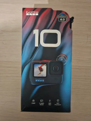 Gopro Hero10 Black funcionando perfectamente, con videos increibles a 5,3K y estabilizacion premiada. Tiene unas pequeñas lineas en la pantalla delantera y una pequeña mancha en la pantalla tactil en el margen inferior izquierdo que salieron al poco tiempo de comprarla, y no han ido a más, de ahi el precio. Por lo demas funciona de maravilla. Videos a 5,3K, control por voz, GPS, giro automático con alineación con el horizonte..etc Se incluye: Gopro Hero10. 1x Bateria. Cable USB de carga. Gopro, Gopro Hero, Gopro Hero13, Gopro 13, Gopro Hero12, moto, Bicicleta, Snorkel, Submarinismo, Surf