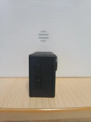 Cámara de acción compacta en color negro. - Pantalla integrada. - Botones de control en el lateral.