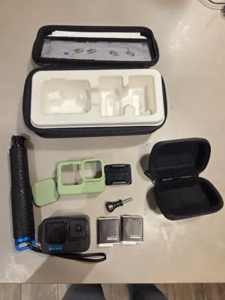 Se vende cámara GoPro Hero 11 Black junto con varios accesorios. Tal como se ve en la primera imagen. - Cámara GoPro Hero 11 Black - Empuñadura extensible - Funda de silicona - 2 baterías originales - Funda de transporte de la cámara - Funda GoPro para cámara y accesorios