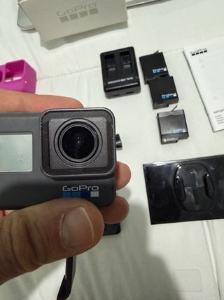 Se vende cámara GoPro Hero 6 Black junto con varios accesorios. Funciona todo bien entrego 3 baterias en total la camara a estado desde el minuto uno con protector de cristal templado en objetivo y pantalla trasera siempre para hacer las fotos he quitado el del objetivo el de la pantalla sigue , se entrega con todo lo que se ve en las fotos - Cámara GoPro Hero 6 Black. - Carcasa de protección. - Baterías adicionales. - Cargador dual. - Empuñadura. - Soporte. - Manual de instrucciones.