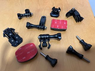 Lote de accesorios de repuesto para GoPro Hero 3+. - Soporte curvo adhesivo. - Soporte plano adhesivo. - Adaptador de montaje. - Tornillos de sujeción.