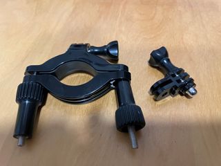 Accesorio de montaje para cámaras de acción tipo GoPro. - Soporte con abrazadera para manillar. - Adaptador de 3 puntas para cámara.