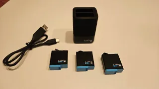 -3 baterías Gopro. -1 cargador doble ranura Gopro. -1 cable de carga Gopro. Todo es original, funciona perfectamente, y es compatible con Gopro Hero 8 Black, 7 Black, 6 Black, 5 Black y Hero (2018). No vendo baterías sueltas.