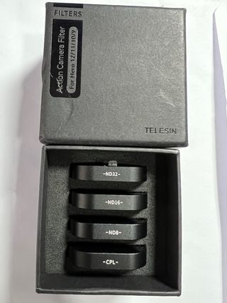Set de filtros ND y CPL para cámaras de acción. Solo tienen un uso, el de 32 a estrenar. - Incluye filtros ND32, ND16, ND8 y CPL. - Diseñados para GoPro Hero 12/11/10/9.
