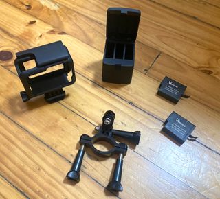 Extras esenciales para tu Hero5, Hero6 o Hero7: - Cargador rápido de 3 Baterías - 2 Baterías compatibles - Funda protectora con montura de extracción rápida - Soporte para bicicleta o moto con enlace de 90º Hero 5 6 7