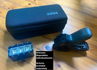 Kit de accesorios para cámaras GoPro. Dale un boost a tu GoPro Hero 3 4 5 6 7 8 9 10 11 12 o 13, con la abrazadera Jaws, un foco sumergible y recargable, y el estuche rígido oficial de GoPro. Precio por el paquete completo. Artículos disponibles individualmente. - Incluye funda de transporte negra con logo. - Incluye luz LED doble para exteriores. - Incluye empuñadura con clip. Gopro Hero 3 4 5 6 7 8 9 10 11 12 13
