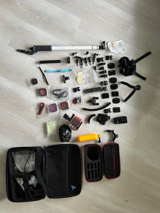 cámara tipo GoPro con los accesorios que se ven en la imagen. larga duración de batería opción de meter microSD sumergible en el agua pg: foto, vídeo, vacaciones, hero
