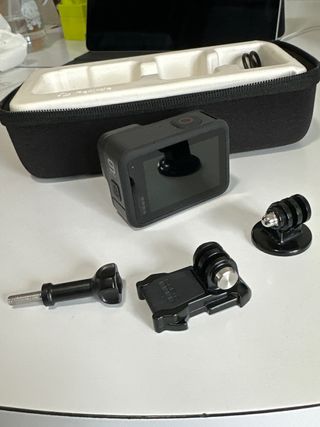 Cámara de acción GoPro Hero 9 Black. Apenas usada en tres viajes, sin golpes ni cambios de dueño. Vendo por poco uso. Sin fallas, prueba a fondo si desea. - Color negro. - Incluye accesorios de montaje.