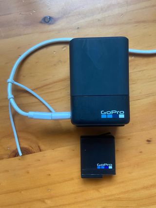 Vendo cargador dual GoPro para baterías, junto con una batería adicional. El cargador está en buen estado y la batería se ve en perfectas condiciones. - Cargador doble para baterías GoPro. - Incluye una batería GoPro adicional. - Perfecto para viajes y aventuras.