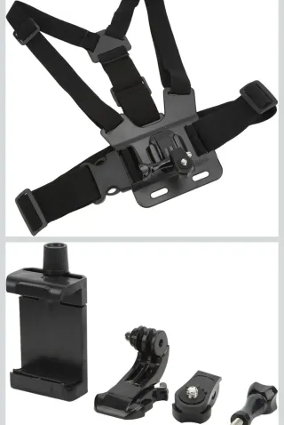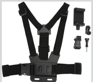 Este arnés de pecho es compatible con cámaras GoPro y otros modelos similares. Incluye varios accesorios para montar tu cámara. - Arnés de pecho ajustable. - Soporte para teléfono móvil. - Adaptador para GoPro. - Tornillo de montaje.