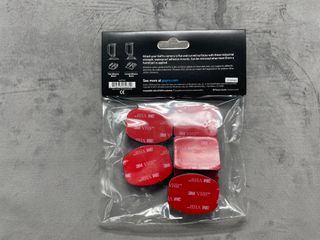 Lote de accesorios originales para cámaras GoPro. - Soporte adhesivo. - Adaptador de rosca. - Tornillos de sujeción. - Base de montaje. - Manual de instrucciones.