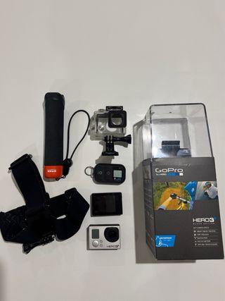 Se vende cámara de acción GoPro HERO 3+ con accesorios. - Cámara GoPro HERO 3+. - Pantalla de visualización. - Carcasa impermeable. - Mando a distancia. - Empuñadura. - Soporte para cabeza. - Base de montaje.