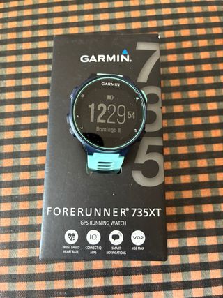 Reloj GPS Garmin Forerunner 735XT en color azul marino. Oportunidad! Como nuevo. Estado 10/10. Se entrega con caja, manuales y cargador. Todo original. Mide VO2 máx. Conectable con Strava. Color azul. La batería dura casi una semana. Multideporte: running, natación, triathlon, etc. No se ha usado nunca para natación. Precio: 135€ no negociable. Preferible en Bcn. Si hay envío pago vía bizum. ¡No lo dejes escapar!