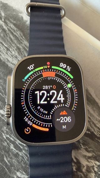 Reloj inteligente Apple Watch Ultra 2 con conectividad GPS y celular. Diseño elegante en color azul marino y plateado. Fecha compra junio 2025. Vendo por cambio de reloj. - Caja de titanio. - Pantalla Retina siempre activa. - Resistencia al agua.