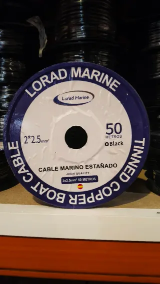 Manguera de cable marino estañado de alta calidad de la marca Lorad Marine. - Longitud: 25 metros. - Sección: 2x6mm². - Color exterior: Negro.