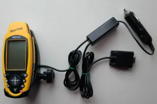 navigator navegador GPS portátil modelo Magellan SporTrak. Diseño: Cuenta con una carcasa amarilla brillante para alta visibilidad y botones de control principales en la parte inferior. Función: Está diseñado para navegación al aire libre, incluyendo senderismo y uso marino. Pantalla: Dispone de una pantalla monocromática para mostrar mapas y datos de posición. Características: Incluye funciones de seguimiento de rutas y puntos de referencia