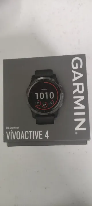Reloj inteligente Garmin Vivoactive 4 en color negro. - Pantalla táctil a color. - Diseño deportivo y moderno. - Correa cómoda y ajustable. - Nuevo en su caja original con instrucciones Además regalo pack de 4 pulseras de silicona nuevas (gris, blanco, negro y azul marino)