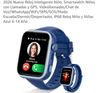 Reloj inteligente para niños con funciones de llamada y GPS. Incluye correa adicional. - Correa de tela azul. - Correa de silicona azul marino. - 2 protectores de cristal. - Manual de usuario. El reloj tiene funciones para contar pasos, llamadas por voz con tarjeta SIM (número propio o multiSIM), mensajes SMS, mensajes de voz por chat familiar, videollamadas, permite instalar WhatsApp, y una serie de aplicaciones variadas. No tiene acceso a internet general. Incluye varios fondos intercambiables. La correa es muy ajustable para todas las tallas. Se vende nuevo, me lo han regalado pero ya tengo. Vale 90 euros nuevo.