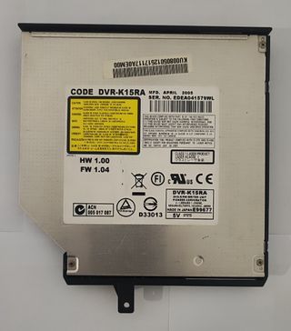 Vendo lector/grabadora de DVD-RW modelo DVR-K15RA. Procedente de portátil Acer Aspire 3000. Se desmontó funcionando. Compatible con multitud de marcas y modelos de portátil. - Marca: Pioneer - Código: DVR-K15RA - HW: 1.00 / FW: 1.04 - MFD: APRIL 2005 - SER. NO: EDEA041579WL Envío por wallapop o entrega en mano.