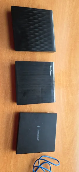 3 Grabadoras externas para CD y DVD. Su diseño es elegante y compacto. 10 euros cada una. 25 euros las 3 - Superficie con acabado lineal. - Color negro.