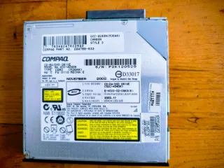 Lector grabador de CD/DVD de la marca Compaq, modelo GCC-4240N. - Fabricado en Japón. - Diseñado por Hitachi-LG Data Storage. - Número de parte: 294766-633. - Requiere +5V.