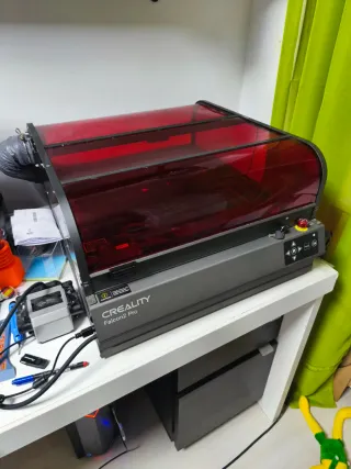 Grabadora y cortadora láser Creality Falcon2 Pro de 40W. Diseñada para trabajos precisos y eficientes. - Potencia de 40W. - Cubierta protectora roja. - Incluye sistema de extracción de humos. Regalo módulo de 1.6w para grabados finos y detallados Conserva su caja original