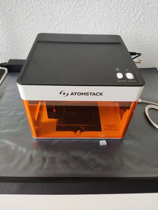 NO FUNCIONA EL LÁSER. Todo lo demás funciona perfectamente. PVP:189€ Mini grabadora Atomstack P1. Es un modelo compacto "plug and play" que no requiere montaje y está listo para usar. - Potencia: Láser diodo 5W - Materiales: Graba madera, cuero, acrílico oscuro, cartón, bambú, corcho, fieltro, tela, e incluso metal recubierto. - Seguridad: Diseño totalmente cerrado con certificación Clase 1, con ventana de visualización segura. Incluye sensores de inclinación y apertura de puerta que detienen la operación inmediatamente. - Software: Compatible con la App AtomStack Studio gratuita (Android/iOS) y LightBurn (PC/Mac).