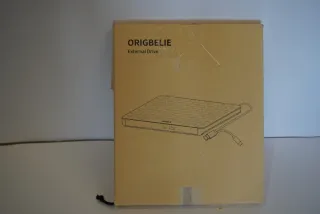 Grabador de CD y DVD externo de la marca ORIGBELIE. Ideal para leer y escribir discos. - Diseño delgado y portátil. - Conexión USB para fácil instalación.