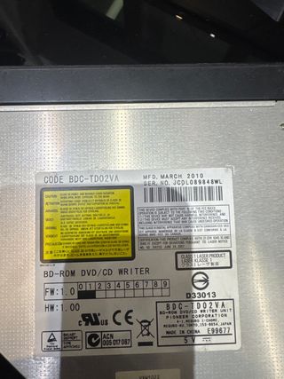 Unidad lectora y grabadora de DVD/CD de Pioneer. - Modelo: BDC-TD02VA - Fabricado en marzo de 2010. - Conexión: 5V.