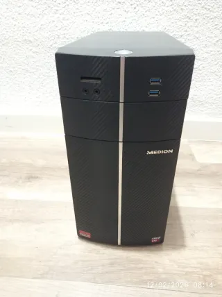 Ordenador de sobremesa Medion con procesador AMD A10-7800 3,50 Ghz 12 Compute Cores. Ram 8 Gb. Disco Hdd 1 TB. Grabadora dvd. Lector de tarjetas. Usb 3.0. Actualmente tiene instalado un sistema RetrOs basado en windows 7 para emular una máquina recreativa tipo arcade bartop, Incluye juegos, emuladores, etc. falta terminar de configurar.