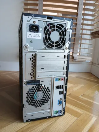 Se vende torre de ordenador sobremesa totalmente funcional. Equipo ideal para retro gaming, emulación, uso básico de oficina, Linux ligero o proyectos. Características técnicas: - Procesador: AMD Athlon 64 - Gráfica: Dedicada (salidas VGA + DVI + TV-Out) - Almacenamiento: Disco duro HDD 160 GB - RAM: Estimada entre 2–4 GB (no ampliado recientemente) - Placa base: Gigabyte - Unidades ópticas: - 2x DVD LG (lector/grabador) - Lector tarjetas frontal: - SD / MMC / MS / CF / XD - Conectividad: - Ethernet LAN - Múltiples puertos USB - Audio analógico multicanal - Salida óptica SPDIF