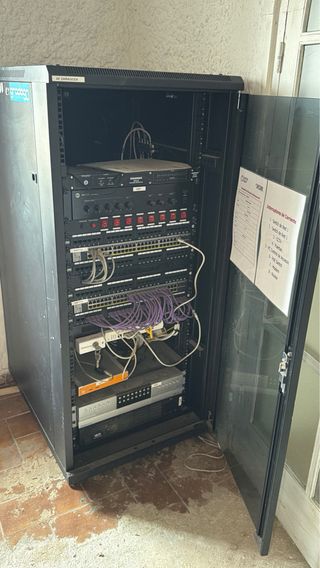 Se vende rack de comunicaciones totalmente equipado y en funcionamiento. Ideal para empresas, oficinas o negocios que necesiten una infraestructura robusta de red y audio. El conjunto incluye: • Amplificador Mezclador RCF AM1125 (120W) + Protector de altavoces Drawmer SP2120. • Router DrayTek Vigor 2862 (Alta gama) + 2 Switches de 24 puertos + Paneles de parcheo. • Grabador de video NVR para cámaras de seguridad. • Regleta profesional con interruptores individuales y ventilación superior integrada. Rack de suelo con puerta de cristal de seguridad y paneles laterales desmontables. Todo el cableado incluido. Equipos de primeras marcas