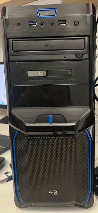 Ordenador de sobremesa. - Carcasa negra. - Puertos USB y de audio frontales. - Ventilador grande en la parte trasera. - Conexiones traseras para monitor y otros periféricos. - GRÁFICA MSI GEFORCE GTX 1080 ARMOR OC 8GB GDDR5. - INTEL CORE I7 7700K 4,2GHZ. - Grabadora LG 24 X. - MEMORIA DDR4 2X8. - NO TIENE DISCO DURO. - NO se hacen envíos. Solo en persona.