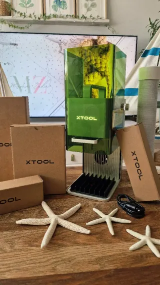 Grabadora láser portátil XTool F1 en color verde. - Diseño compacto y moderno. - Ideal para grabados precisos. La xTool F1 es una grabadora láser dual portátil, rápida y compacta (láser de diodo de 10W + infrarrojo de 2W), diseñada para alta precisión en pequeños negocios o makers. Permite grabar metales duros, cuero, madera, acrílico y piedra con velocidades de hasta 4000 mm/s, ideal para personalización en ferias o en casa. Precio original: 1.500€ Todo en su embalaje original. Únicamente marca de grabado en la placa base.