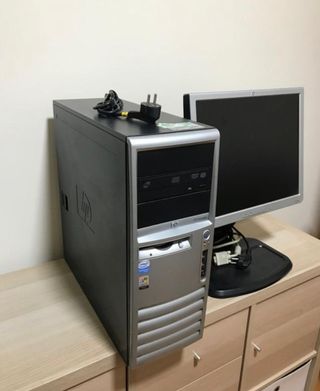 Ordenador de sobremesa HP con procesador Intel Core 2.lleva monitor con altavoces de 17 pulgadas lleva lector dvd y grabadora cds 8 puertos usb lleva teclado y mouse y almuadilla y sus cables corresppientes entrego en mi casa para que podais ver que funciona perfecto lleva el office gratuito un buen equipo para principantes cualquier duda preguntame tambien tengo intel 3 iguales a los de color negro con 256gb y 4gb ram a 100 euros la unidad - Disco duro de 160 GB. - 4 GB de memoria RAM. - Incluye Windows 8.no activado